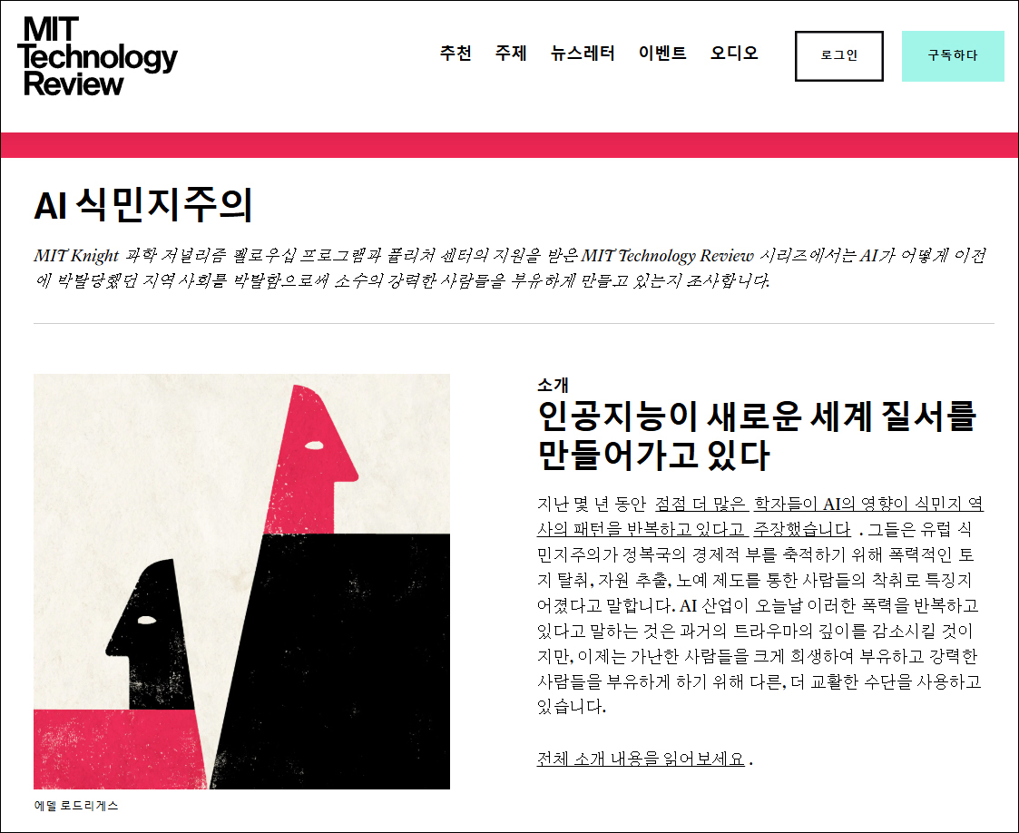 AI 식민주의 특집 - 총4부 "인공지능이 새로운 식민지 세계 질서를 만들어내고 있다" (MIT Technology Review, 2022.04)