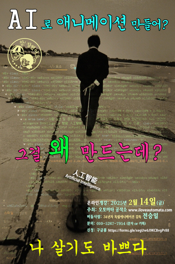 AI 실험 애니메이션 전승일 감독 프로필 영화보기 은 영상 생성 AI 기술을 활용하여 환경 문제와 사회적 트라우마를 테마로 제작했던 나의 기존 드로잉과 디지털 페인팅, 애니메이션을 새롭게