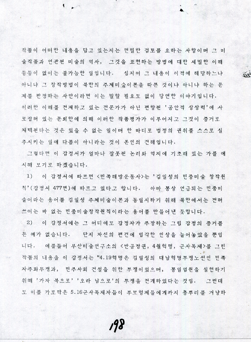 [걸개그림 민족해방운동사 아카이브] "민족해방운동사 이적성향 감정서" (1989.08/서울대공전술연구소)