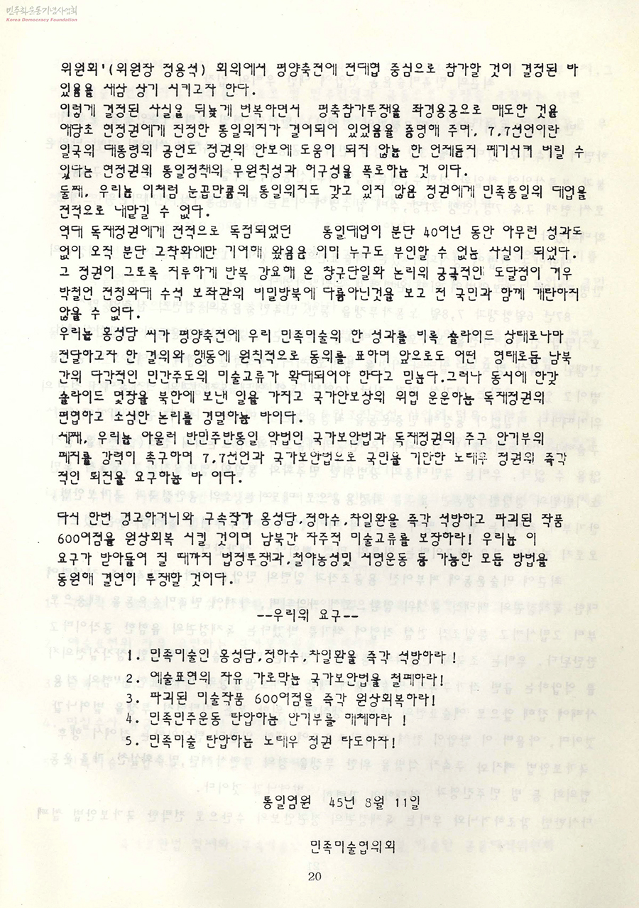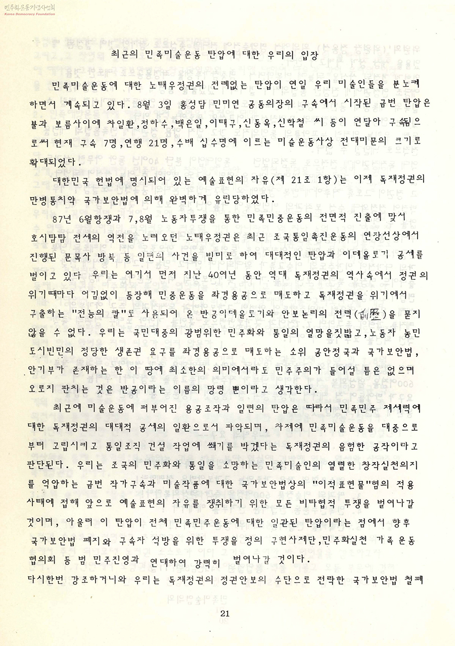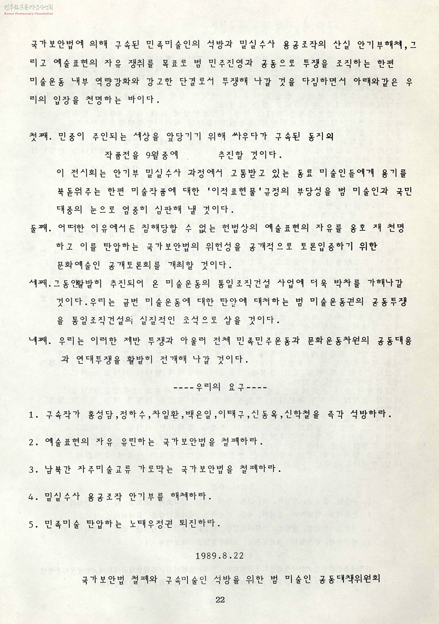 주최: 국가보안법 철폐와 구속미술인 석방을 위한 범미술인 공동대책위원회