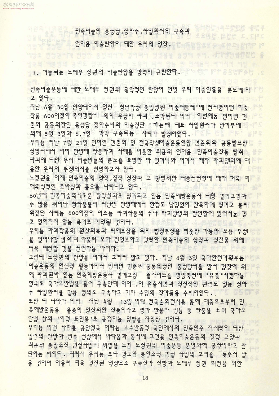 1. 민족미술인 홍성담, 정하수, 차일환을 즉각 석방하라!